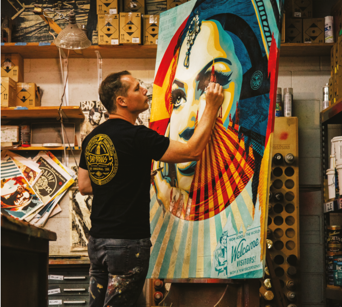 La poetica artistica di Obey si basa sul fatto che il potere dei media è enorme e le masse possono essere influenzate e manovrate costantemente dalla pubblicità. Ed è appunto nel suo nome d’arte che si racchiude il senso del suo lavoro: “Obey” significa “obbedire”, ma viene utilizzato dall’artista con un’accezione ironica e provocante.